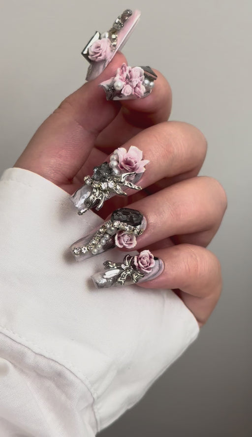 Elevate your style with Luxe 1.2 from the Cherrllery Luxe Collection. This striking design pairs perfect pink and rich black with a stunning mix of floral accents, faceted stones, and a touch of bling. Bold, feminine, and unmistakably luxurious—made to turn heads.